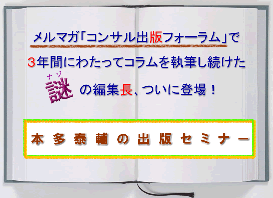 その編集長として、ビジネス出版社OBならではのインサイダー情報や毒舌を披露してきた編集者、本多泰輔(ペンネーム)が、このたび出版指南セミナーをこっそりと開催することになりました。